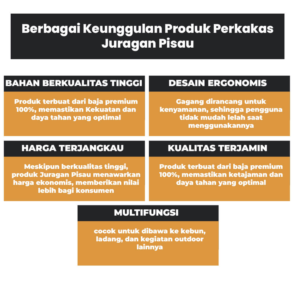 - Serbaguna, cocok untuk dibawa ke kebun, ladang, dan kegiatan outdoor lainnya